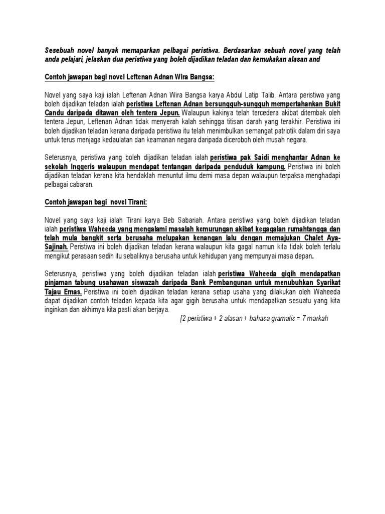 Berikut dikongsikan maklumat berkaitan pengajaran dan contoh dalan Novel Tirani. Berikan alasan anda novel leftenan adnan wira bangsa peristiwa. Contoh karangan bahasa inggeris tingkatan 3 english essays form 1 2 3.